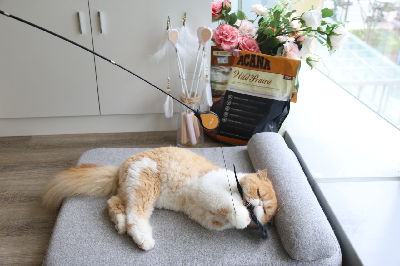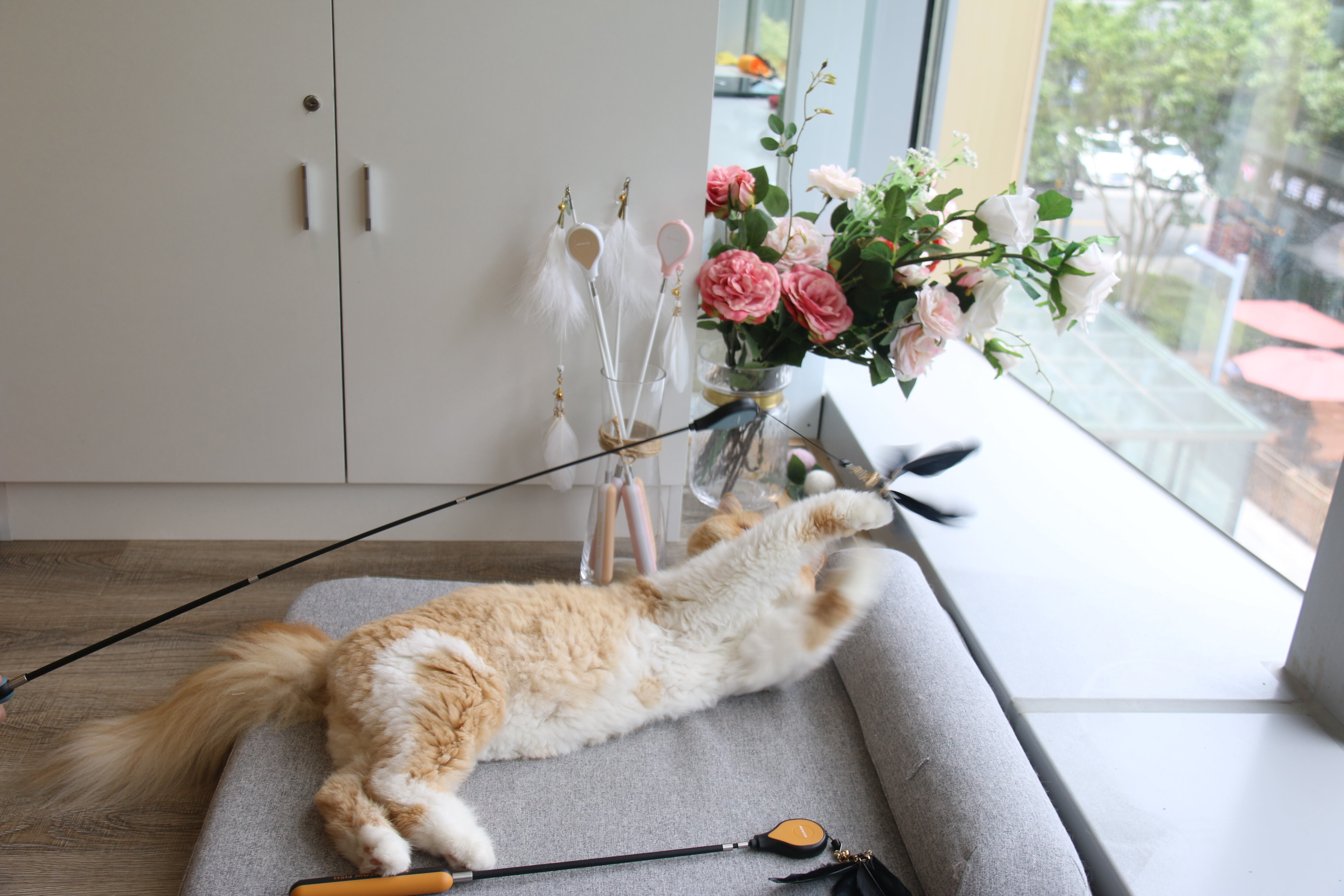 羽のついた先は伸び縮みする仕様となっていて、まるで釣りざおのような形になっていており、ペット達の気をうまく引いてくれるおもちゃです。